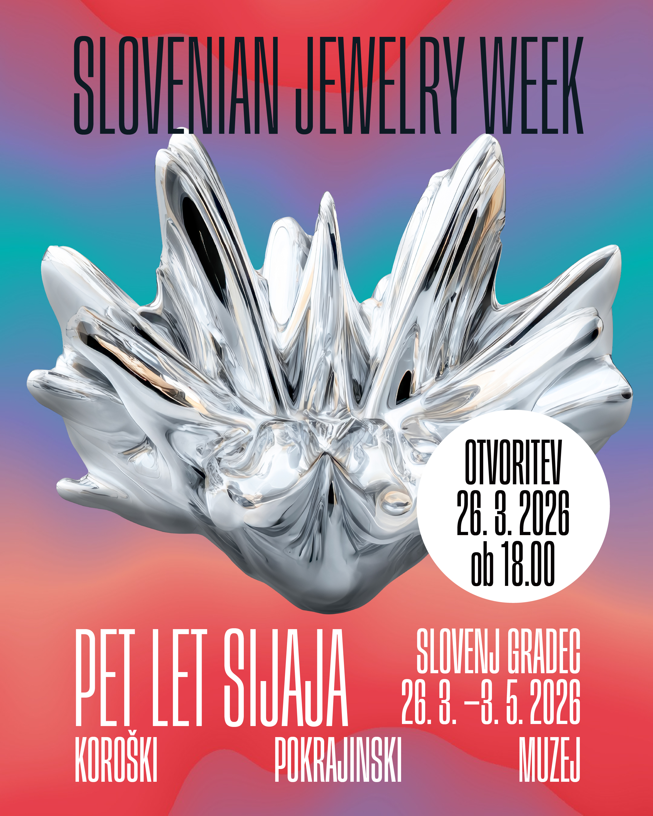 Koroški pokrajinski muzej, Muzej Slovenj Gradec vas v četrtek, 26. marca 2026, ob 18. uri vabi v Muzej Slovenj Gradec, Glavni trg 24 na odprtje občasne razstave 5 let sijaja: retrospektivna razstava nagrajenih avtorjev Slovenskega tedna nakita.