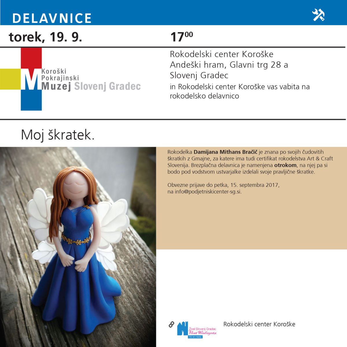 Rokodelka Damijana Mithans Bračič je znana po svojih čudovitih škratkih z Gmajne, za katere ima tudi certifikat rokodelstva Art & Craft Slovenija. Brezplačna delavnica je namenjena otrokom, na njej pa si bodo pod vodstvom ustvarjalke izdelali svoje pravljične škratke.